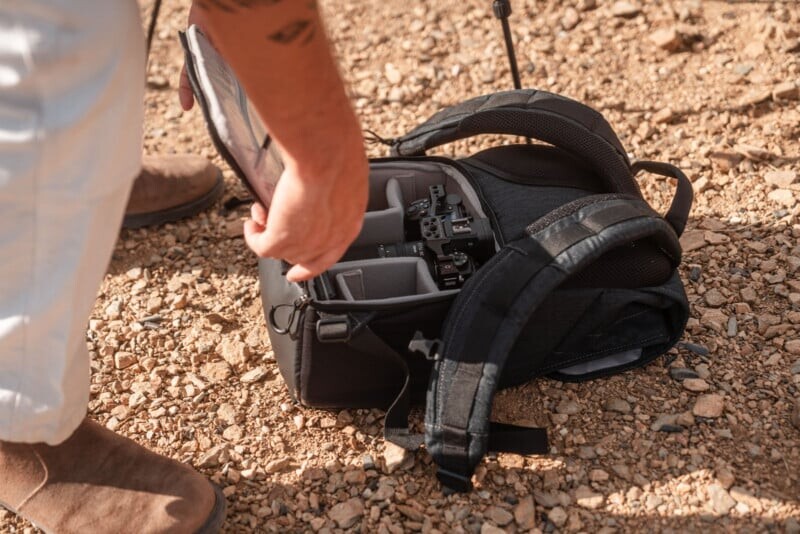 Рюкзак Cityscape 2.0 отличается сдержанным дизайном, чтобы не привлекать ненужного внимания на съемках в полевых условиях. В дополнение к основному отделению, рюкзак включает три большие передние карманы для аксессуаров, а также отдельное отделение для ноутбука и боковые карманы для бутылок с водой и штатива. Вместе с рюкзаком идут специальные ремни для штативов.