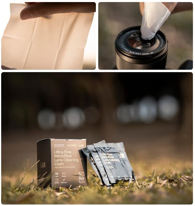 Чистящий раствор лишен спирта и считается безопасным для покрытых оптик. Он предназначен для использования с микрофибровыми салфетками, которые, по словам Viltrox, дополнительно пропитаны полимерными чистящими веществами для повышения эффективности. Хотя некоторые фотографы могут предпочесть более агрессивный раствор со спиртом, более щадящая формула может заинтересовать тех, кто работает с деликатными покрытиями или винтажной оптикой.