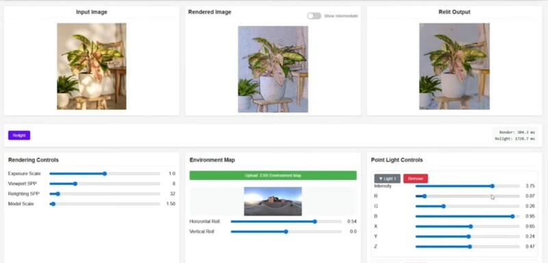 Новый инструмент использует нейронную сеть, но не на всех этапах переосвещения. Вместо этого он создает 3D-карту 2D-изображения, что позволяет создавать настраиваемую карту света, специфичную для каждого изображения.