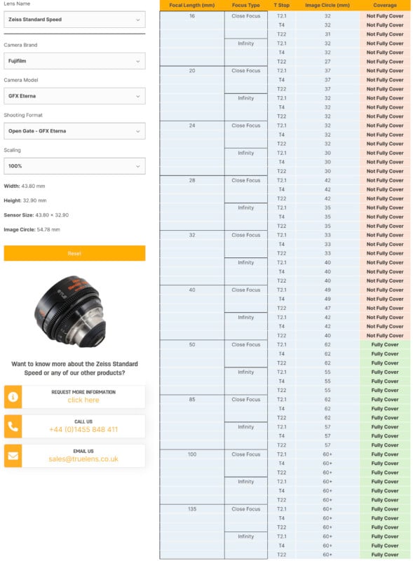 К сожалению, единственным недостатком инструмента TLS является то, что компания включает только те объективы, которые она активно продает, что ограничивает его полезность в некоторой степени, но это вполне логично. Было бы здорово, если бы другие производители кинообъективов разработали что-то подобное на своих сайтах, так как вопрос покрытия возникает часто.