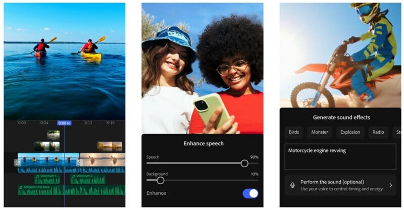 Premiere на iPhone ориентирована не только на редактирование, но и на захват видео. Пользователи смогут записывать голосовые комментарии и редактировать их прямо в приложении. Инструмент Enhance Speech, основанный на ИИ, обеспечивает четкость записей.