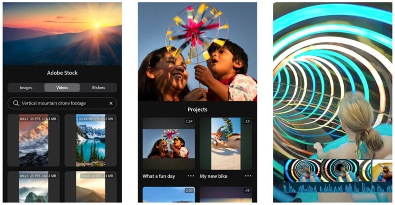 Кроме того, в Premiere на мобильных устройствах активно используется Adobe Firefly, который может генерировать видео, изображения и звуковые элементы при наличии соответствующей подписки. Программа также интегрирована с Adobe Stock, что позволяет находить нужную музыку и изображения для своих проектов.
