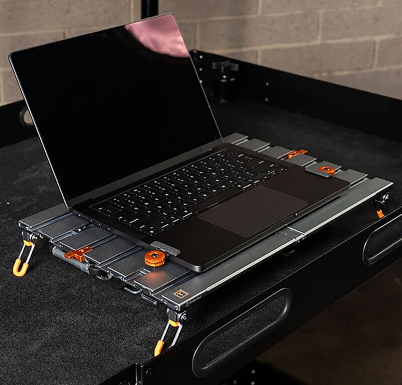 Независимо от того, используется ли он в студии, на месте съемки или в мобильной установке, AeroTrac обеспечивает организацию и доступность ноутбуков, планшетов, внешних накопителей и других инструментов, позволяя создателям поддерживать профессиональный рабочий процесс без жертвования мобильностью или скоростью.