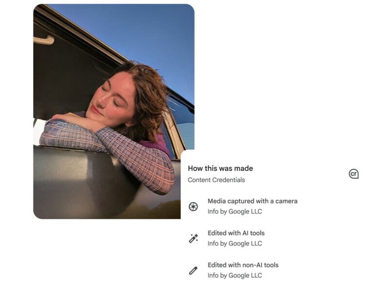 С учетом технологического прогресса с использованием генеративного ИИ, пользователи могут запрашивать кардинальные изменения своих изображений, включая замену неба, добавление новых объектов и многое другое. В рамках обязательств Google по обеспечению прозрачности, использование ИИ обозначается, а с приходом смартфонов серии Google Pixel 10 теперь Google Photos поддерживают учетные данные контента C2PA.