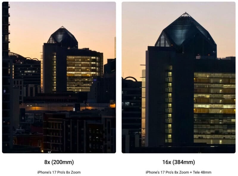 Стоит отметить, что iPhone 17 Pro предоставляет более высокое качество изображений благодаря новому 48-мегапиксельному сенсору, что позволяет получить 48-мегапиксельные RAW файлы и улучшенное качество даже при зумировании.