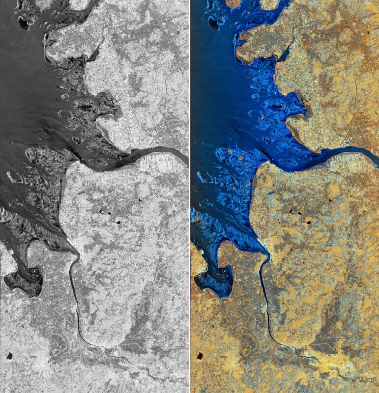 Интересно, что система визуализации Sentinel-1D работает путем эмиссии микроволн, которые отражаются от поверхности Земли. Это позволяет получать снимки в любых погодных условиях — как днем, так и ночью. Радарные камеры получали разные «цвета», комбинируя различные радиоволны, что добавляет изображениям красочности и глубины.
