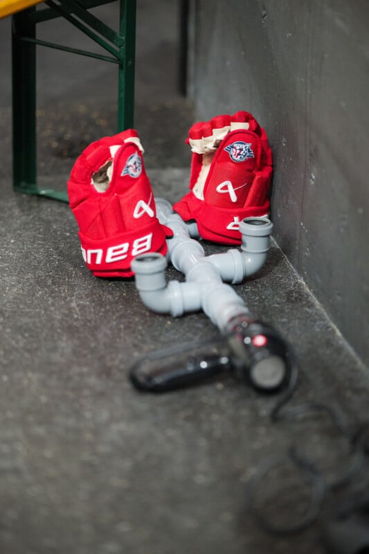 Качество изображения на f/1.4 удивило: объекты на переднем плане четкие, а фон красиво размывается, создавая необычную атмосферу для хоккейной фотографии. Такие снимки делают вашу работу заметной и привлекательной для зрителей.