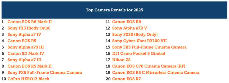 Canon и Sony доминируют в списке самых арендуемых товаров Lensrentals 2025 года