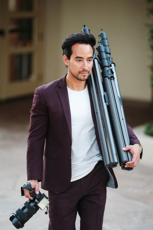 Модель высотой 9 футов разработана для путешествий и может быть компактно сложена, чтобы поместиться в стандартный чемодан для сдачи багажа. MagMod также представил систему магнитных соединителей для ног, которая позволяет легко переносить несколько штативов одной рукой.