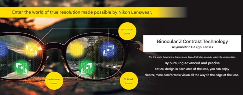 Nikon привнесла свою технологию объектива Z Series в мир однокамерных очков. Новые линзы, созданные в сотрудничестве с Essilor, обещают улучшение разрешения и контрастности по сравнению с традиционными однокамерными линзами.
