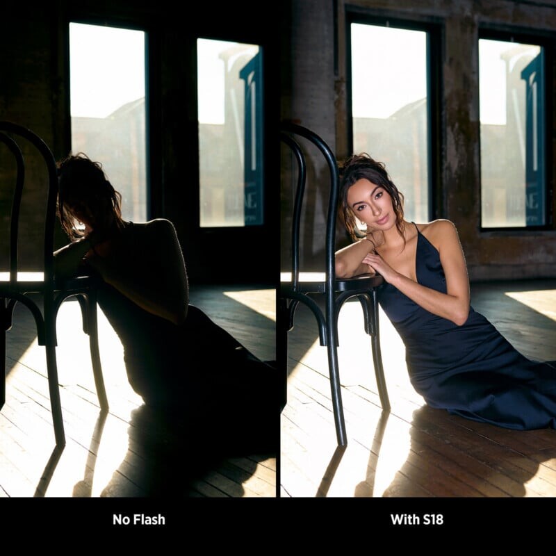 С весом всего 99 граммов и габаритами 61 x 53 x 23 мм, S18 предлагает наклонную головку вспышки и 19-ступенчатую систему ручной регулировки мощности с диапазоном в 7 стопов. В то время как вспышка выполнена в основном из пластика и является ручной, то есть не общается напрямую с камерой, её мощность можно настроить самостоятельно.