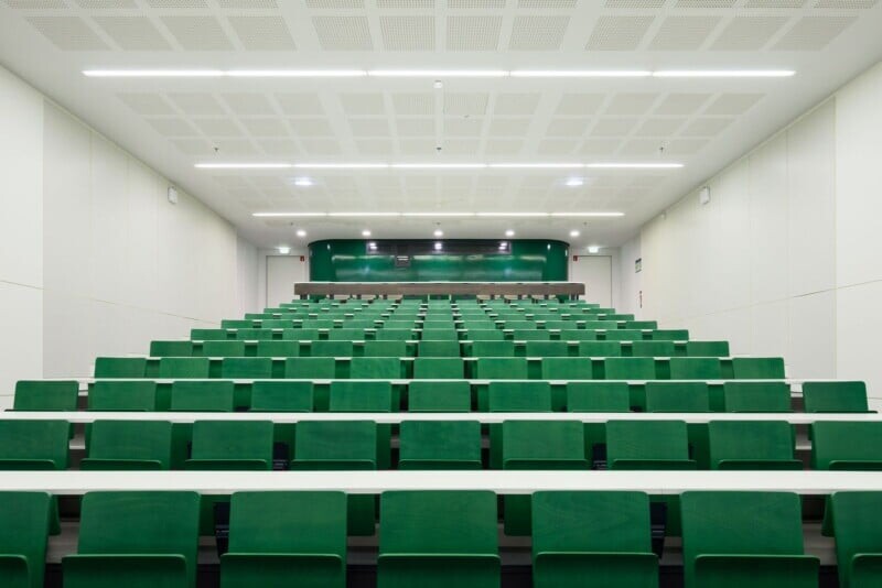 Посетители смогут ознакомиться с различными стилями и размерами амфитеатров, которые являются местом обучения, от малых классов до двухуровневых аудиторий. Выставка посвящена не только архитектуре, но и тому, как каждый элемент способствует процессу обучения и научной деятельности.