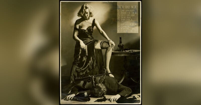 В 1940 году фотограф Уайт Шафер создал удивительное изображение, ставшее символом борьбы с цензурой в Голливуде. Под названием Thou Shalt Not эта фотография не просто пародирует, но и открыто критикует строгие нормы Хейс-кода, действовавшие в киноиндустрии того времени. Она демонстрирует, как творческие ограничивающие рамки сподвигали художников на смелые и провокационные шаги.