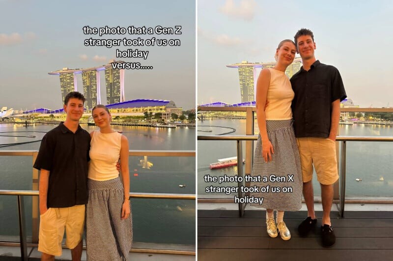Ruby Doyle, 22 года, поделилась двумя фотографиями себя и своего партнёра Люка Оутса, 23 года, сделанными в Сингапуре. Она опубликовала их на TikTok с подписью: «Фотография, которую сделал незнакомец из поколения Z, и фотография, которую сделал незнакомец из поколения X».