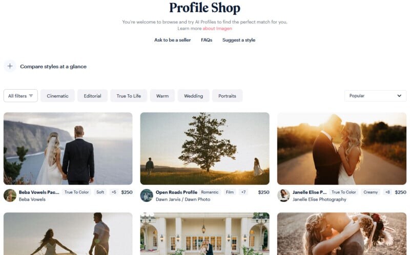 Profile Shop позволяет фотографам покупаться и продавать AI-профили, которые можно проверять и реализовывать в рамках рабочего процесса редактирования Imagen. Покупатели могут просматривать специальные стили, тестировать их на своих фотографиях и легко совершать покупки, в то время как продавцы контролируют свои цены, а Imagen берёт на себя логику, включая продвижение, расчёты и поддержку клиентов.