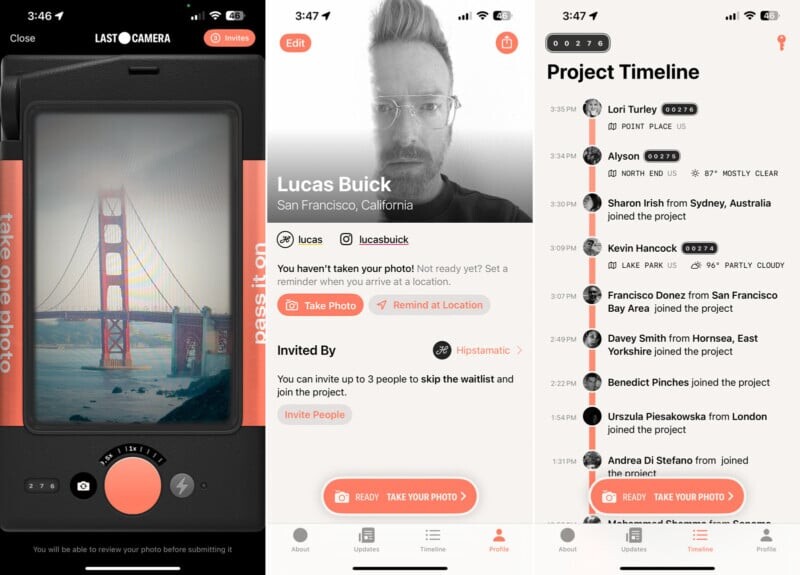 Приложение The Last Camera Project уже доступно для iPhone и iPad и представляет собой уникальную имитацию концепции передачи одноразовой камеры по всему миру между фотографами. Эта идея может показаться непростой в реализации, но дух участия сохраняется в приложении.