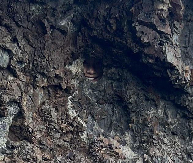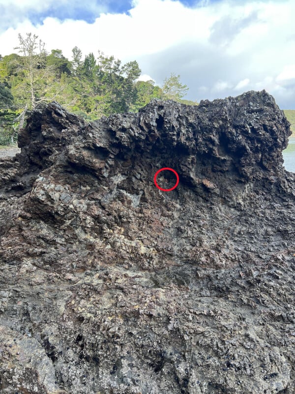 На самом деле, лицо действительно прячется внутри камня, занимая лишь небольшой участок изображения. Родитель, который опубликовал фотографию, объяснил, что этот снимок был сделан в заливе Островов на восточном побережье Северного острова Новой Зеландии, и он решил поделиться этой загадкой на субреддите, поскольку обнаружил в скале небольшой разрыв.