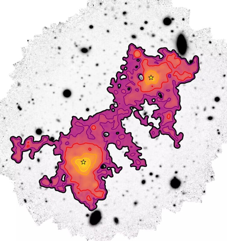 Физики долгое время теоретизировали о существовании этой космической паутины из материи, однако увидеть ее было чрезвычайно сложно. Астрономы из Университета Милано-Бикокка и Института астрофизики Макса Планка опубликовали новое исследование, включающее высококачественные изображения филаментов, соединяющих две галактики, которые принимают участие в формировании новых звезд.