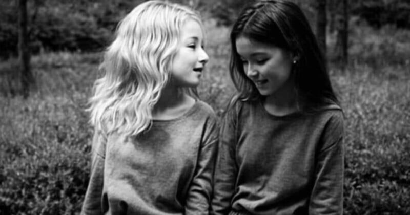 На фото, которое стало популярным благодаря TikTok-креатору и эксперту по иллюзиям Дину Джексону, изображены две девочки, сидящие в поле и общающиеся друг с другом. Однако более внимательные зрители могут заметить третье лицо, скрытое в этом черно-белом изображении.