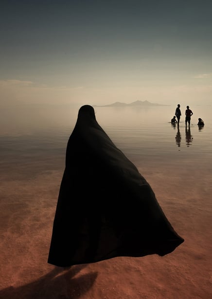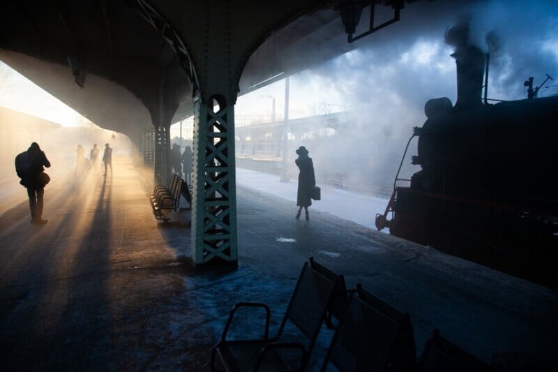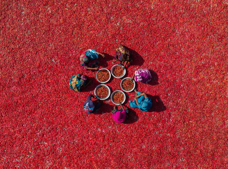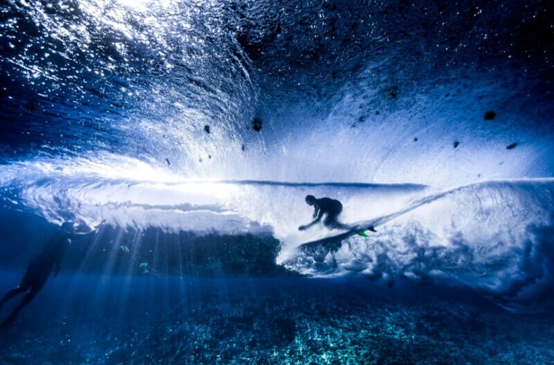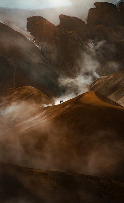 Победная фотография Манна была сделана на вершине ледника Леонес, одного из самых быстро отступающих ледников на Земле. На высоте изнурительной недели экспедиции два альпиниста стоят в силуэте под затмением "Кольца Огня", в то время как снежные облака поднимаются вокруг них. Однако свет на фотографии - это не солнце. Манн использовал осветительное оборудование, установленное на дроне, чтобы осветить лед сверху, подчеркивая текстуры и цвета, которые иначе были бы потеряны в тени затмения.