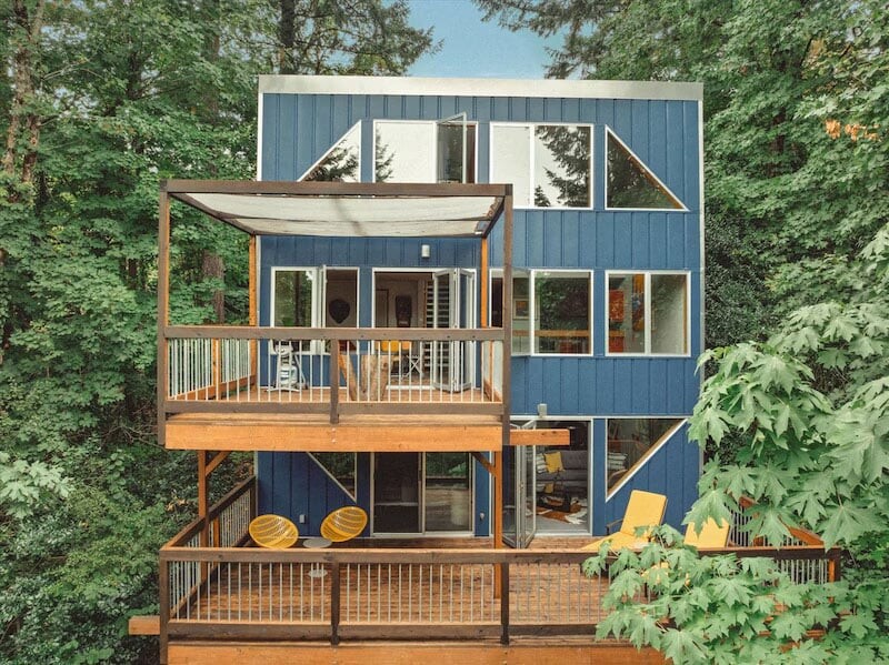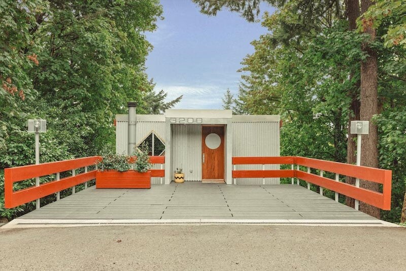 Кубообразный дом с круглыми окнами, имитирующими объективы камер, создан для того, чтобы "ловить свет, виды и воображение". Прекрасный дом площадью 1,262 квадратных фута включает в себя две спальни и две ванные комнаты, расположен на участке в 0,23 акра.