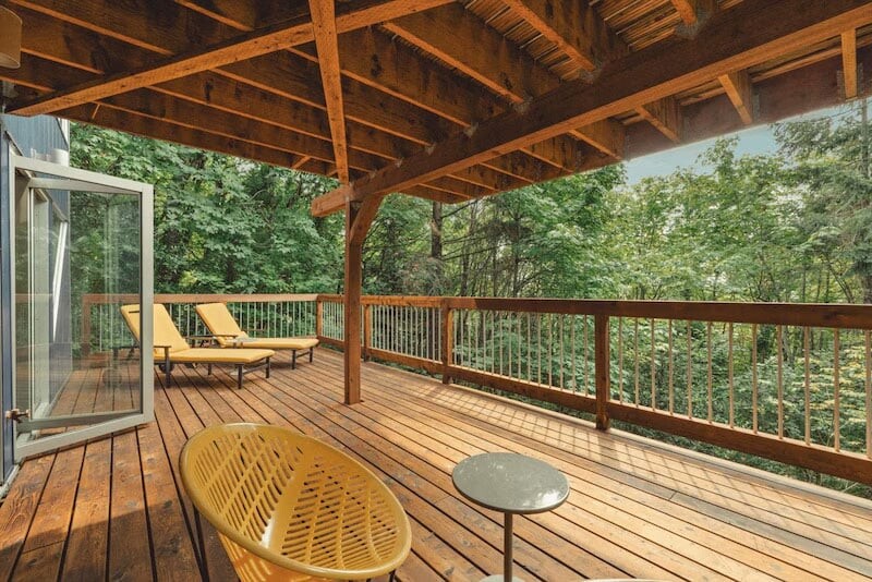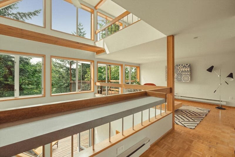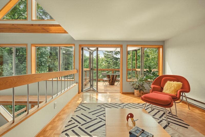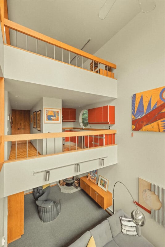 Внутри дома есть раздвижные двери, высокие потолки и паркетные полы, а также офис на верхнем этаже, где фотограф может проводить часы, редактируя свои работы.