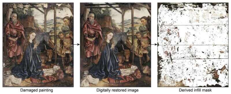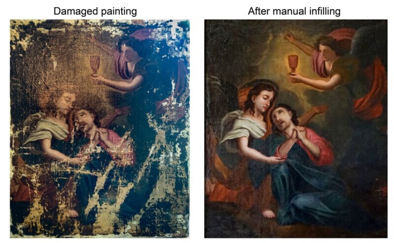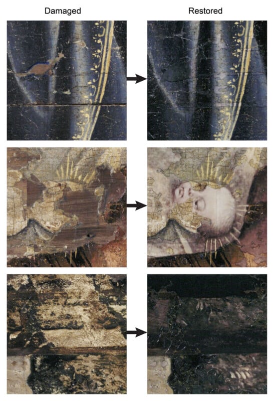 К счастью, Алекс Качкин разработал цифровую методику, которая позволяет восстанавливать произведения быстрее, чем традиционные методы ручного реставрации. Используя методы глубокого обучения для создания тонкой маски, применяемой на поврежденной картине, Качкин надеется вернуть к жизни множество произведений, ожидающих своего часа в запыленных хранилищах.