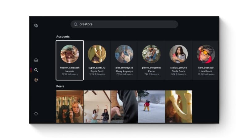 Приложение Instagram для ТВ персонализируется на основе аккаунтов и контента, с которыми пользователь взаимодействует. Reels группируются по каналам и категориям — таким как комедия, спорт, музыка, путешествия и образ жизни — чтобы упростить навигацию. Когда выбран один Reel, автоматически начинает воспроизводиться следующий с полным звуком, без необходимости пролистывать, хотя пользователи могут пропустить видео. Instagram для ТВ также акцентирует внимание на Reels, популярных среди друзей пользователя, и включает функцию поиска. Пользователи могут лайкать Reels, просматривать комментарии и делиться видео, которые они смотрят.