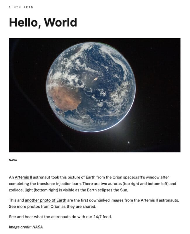 Когда первые фотографии экипажа Artemis II были переданы на Землю, началась безумная гонка за их распространением. Одно изображение появилось на странице «Изображение дня» NASA в полном HD разрешении. Другие оказались на специальной веб-странице, посвященной миссии Artemis II, к которой сложно добраться, если не наткнуться на ссылку в другом месте. Также существует портал NASA Images, доступный через главный навигационный бар на сайте NASA. В конечном итоге многие изображения также завершают свой путь на странице NASA в Flickr.