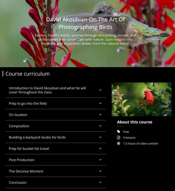 Tamron University уже предлагает четыре курса: “Искусство повествования” с Эрикой Робинсон, “Природная фотография” с Куртом Гарднером, “Коммерческая и знаменитостная портретная съемка” с Эрнаном Родригесом и “Искусство фотографии птиц” с Дэвидом Акобяном.