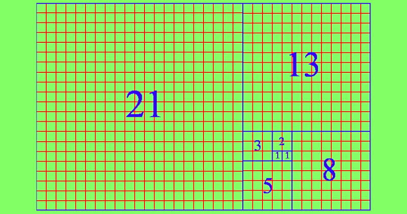 Последовательность выглядит следующим образом: 0, 1, 1, 2, 3, 5, 8, 13, 21, 34, 55 и так далее. С увеличением последовательности, отношение двух последовательных чисел всё больше приближается к 1:1.618.