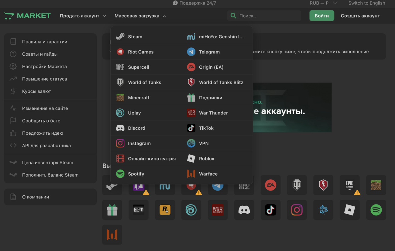 В наше время всё больше людей стремятся получать товары и услуги через интернет. Одним из самых востребованных сегментов является рынок аккаунтов для различных платформ и сервисов. Здесь на помощь приходит Lolzteam Market — крупнейший маркетплейс, предоставляющий возможность купить аккаунты для самых популярных сервисов, таких как Steam, Fortnite, VK, Instagram, Discord, YouTube и других.