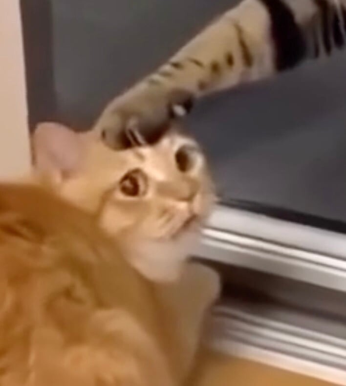 Милое и забавное видео с двумя кошками заставило интернет задуматься — это реальность или работа искусственного интеллекта? В ролике оранжевая кошка встречается с полосатой, находящейся по ту сторону стеклянной двери. Когда дверь открывает человек, полосатая кошка касается головы оранжевой.